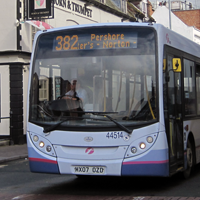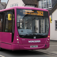 Until the end of August 2015, daytime journeys of Service 382 were operated by Astons Coaches. At that time they surrendered their registration and First Midland Red Buses Limited took over the service from Tuesday 1st September 2015 (the Monday was a Bank Holiday), operating to a reduced timetable with one journey in each direction every two hours during off-peak times. Short-working journeys between Worcester City Centre and Norton only were operated on Sundays and Bank Holiday Mondays, replacing Service 32 between Worcester City Centre and St. Peter’s Estate.