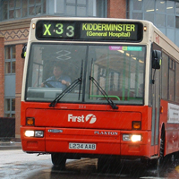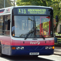 Service X33 was operated by First Midland Red Buses Limited as part of a Worcestershire County Council from Monday 1st September 2003. The service operated hourly, seven days a week, between Alexandra Hospital, Redditch, Bromsgrove, Kidderminster, and Kidderminster Hospital. The service ran as a Limited Stop service between Redditch and Bromsgrove.